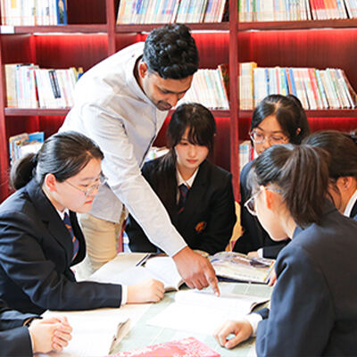 初中融合班 提供以义务教育为基础的中外融合课程,为学生构建扎实的学科体系。强化英语环境,提供学习方式的引导,为顺利进入国际高中学习做准备。 英语教学占所有课程30% 其中一半为外教授课。 课程优势: 超越应试,以兴趣驱动学习 兼顾校本化国家课程与国际化预备课程,采用小班化教学 提供30种体育、艺术、人工智能等兴趣类社团活动 20年中西融合教
