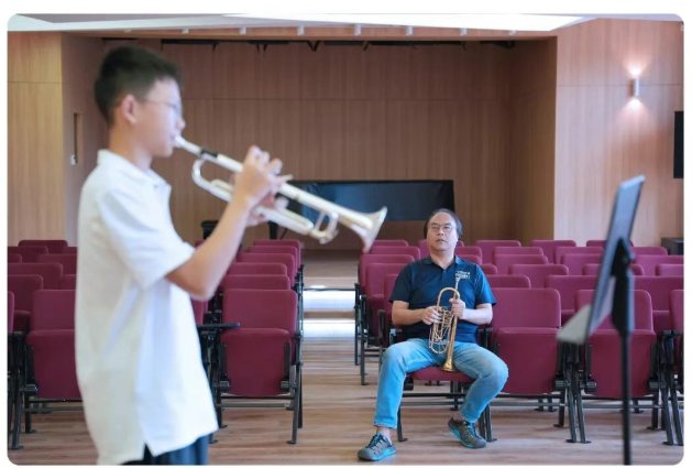 在专业课教学中,器乐与声乐老师率先为 “基础夯实” 打下根基。深耕音乐教育 20 年的小号陈光老师,在《新学期采访》中提到,东岸BEAM最独特的优势在于 “一人一案的个性化培养”:能根据学生的特点、强项与弱项等个人特质灵活对接申请学校、大师课等资源。基于此,开学初他便为不同目标的学生定制了差异化练习计划,更依托行业资源,邀请全球知名演奏家、教育家来校开展访谈教学,带学生接触前沿音乐理念,避免大家陷入 “只重技术、忽视审美” 的局限;对于更侧重实践演出的学生,他则将练习重点放在舞台细节打磨上,从 “站直身体的姿态” 到 “乐器倾斜的角度”,每一个影响舞台呈现的细节都明确标准,帮学生规避 “技术扎实但舞台表现力弱” 的短板。