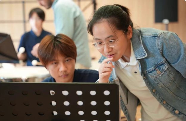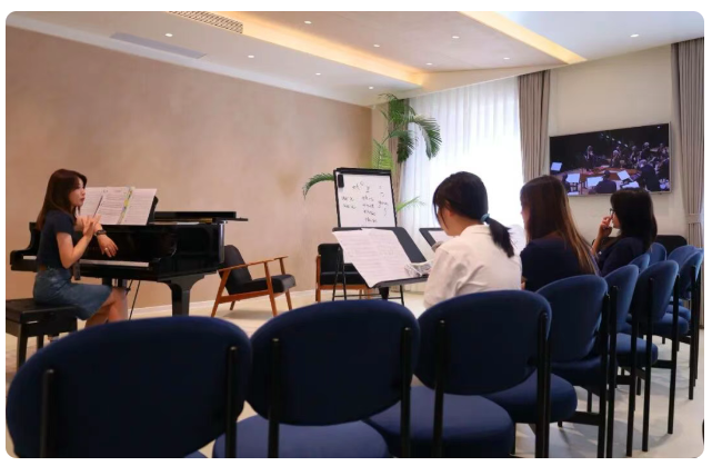 指挥专业陈冰老师深知指挥是 “综合能力要求极强的学科”,需要扎实的钢琴基础、总谱解读能力,还要有 “分秒间做决策” 的魄力。教学中,她会针对有合唱经验的学生,引导其发挥 “懂声部配合” 的优势,再切换到 “指挥视角” 练习。而对基础薄弱的学生,先从钢琴视奏、总谱解读补起,帮他们积累经验,避免因畏难情绪退缩。这种对 “团队协作与能力分层” 的重视,恰好与合唱课申晋宇老师的教学理念形成互补 —— 申晋宇老师将合唱课打造成 “跨专业能力补给站”,她认为合唱不仅是 “学会唱歌”,更能提升听觉敏锐度、帮助理解作曲家风格,这些能力能直接反哺学生的主科学习,让学生在练习中积累音乐认知。她常建议学生:“不要害羞,主动融入集体才能更好享受合唱的乐趣”,而这样培养出的 “声部配合意识” 与 “团队融入能力”。