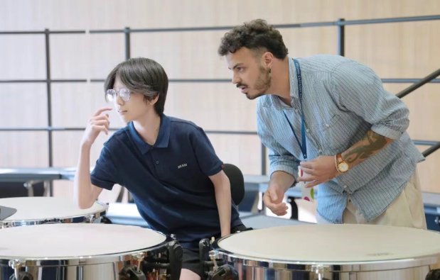 融入的第二步,是打破专业的边界,收获跨领域的友谊。电子音乐制作专业的方嘉瑞,开学没多久就交到了不少好朋友,小提琴专业,双簧管专业……:他说在学校里不用拘谨,和不同专业的同学聊天、一起上课,不仅能分享各自的学习趣事,还能从他们口中听到不同乐器的知识,让校园生活多了很多新鲜感。指挥专业的韦乃榕也感受到了这份温暖,从公立学校转来的她,原本担心会不适应新环境,却在和同学的相处中慢慢放下顾虑 —— 找不到教室时,有同学主动带路;专业上遇到疑惑时,身边的伙伴会一起讨论;连日常练琴间隙,大家也会分享排练中的小插曲,让 “新集体” 渐渐有了 “家” 的感觉。