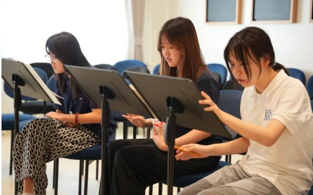 对他们而言,融入的第一步,是让陌生的校园生活 “落地”。声乐专业的陈星潼,在暑期预热班就悄悄打下了适应的基础:不仅跟着课程补全了薄弱的乐理,还借着和同学一起上课的机会,提前熟悉了校园的学习节奏。开学后,她很快摸准了 “学术课 + 专业课” 的平衡节奏,课间或自习课完成文化课作业,再留时间梳理专业知识,让 “陌生的课表” 变成了 “有条理的日常”。双簧管专业的李明泽也有同感,暑期预热班不仅帮他衔接了专业,更让他提前认识了同学 —— 原本担心开学后会拘谨的他,因为和熟悉的伙伴一起走进教室、琴房,少了初来乍到的局促,连练琴时都更放松。