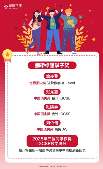 今年,爱迪英高部的田同学、张同学、巩同学三位学子凭借IGCSE数学满分,荣获IGCSE数学“世界顶尖奖”,至今,爱迪已有7位学子获得剑桥卓越学子奖。他们在数十万名考生中脱颖而出,彰显了爱迪学子在国际学术舞台上的竞争力与优异表现。此外,爱迪累计有161位爱丁堡公爵国际奖挑战者,其中包括3名金奖挑战者。他们在紧张的学习之余参与挑战,让自身的各方面能力都得到了充分的锻炼与提升,同时也为大学申请增添了高含金量的活动背景。