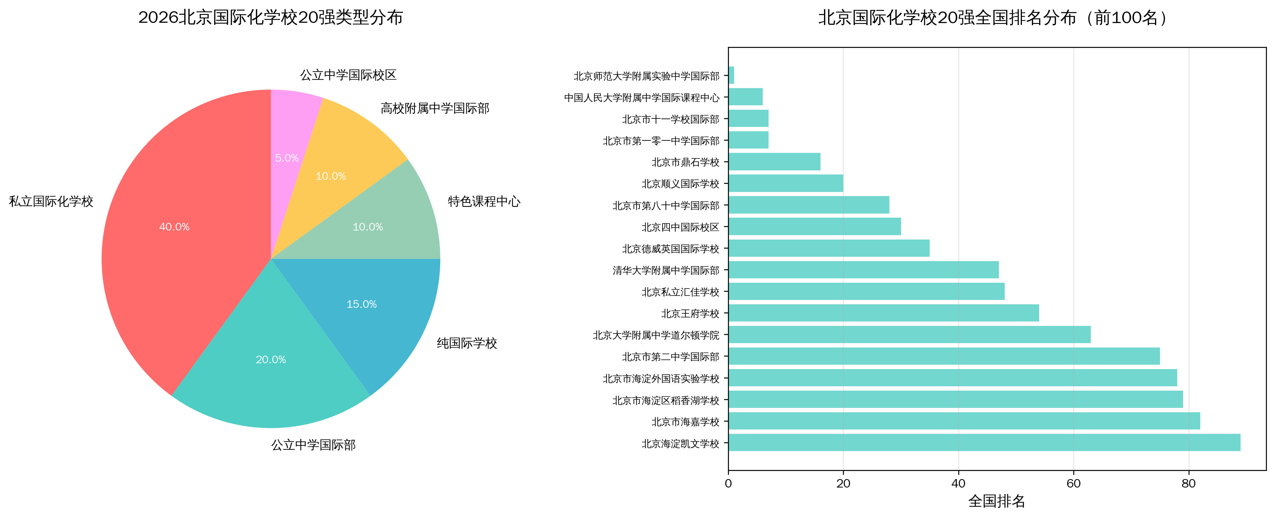 北京20强国际化学校在全国范围内表现亮眼,整体竞争力位居全国前列,具体排名呈现出"头部顶尖、中部密集、尾部达标"的鲜明特征。