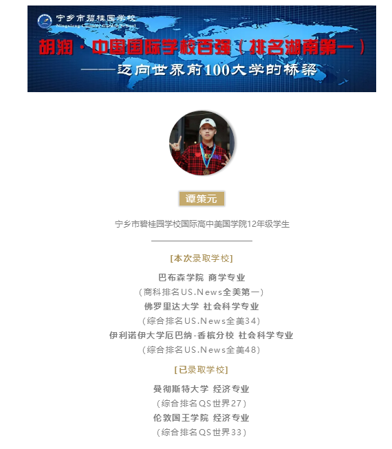 宁乡碧桂园国际高中美国学院连获6份offer,全美商科第一学校领衔