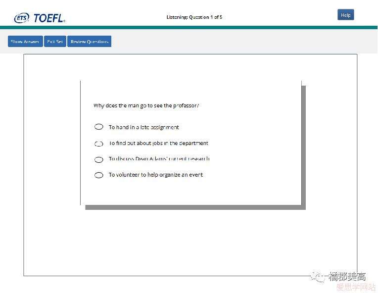 听力部分相对是变动最少的part了,取消了加试部分,以后将只考3篇讲座和两篇对话。