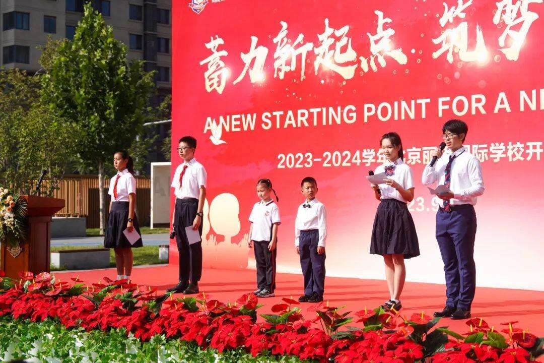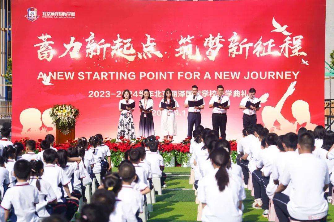 2023年9月1日上午,北京丽泽国际学校全体师生齐聚一堂,隆重举行以“蓄力新起点,筑梦新征程”为主题的开学典礼。全体新生迈着坚定自信的步伐,携手走过迎新门,步入人生的新阶段。这是共同迎接新学年、新起点的豪情时刻;也是充满希望和憧憬的美好时刻。开学典礼在雄壮激昂的国歌中开启,那一刻,大家都再次扬帆起航踏上新征程。