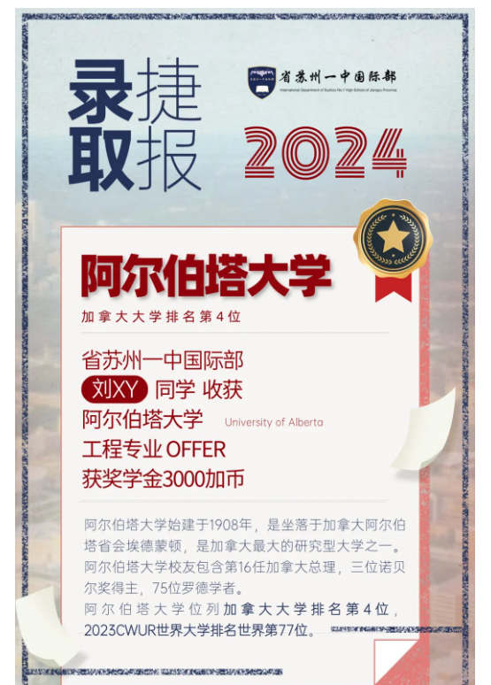 从2010年到2020年的11年间,在加拿大学习的中国学生人数持续增长,增长率达146%。因此对于加拿大方向的申请,同学们依托一中国际部的OSSD项目加持及A-leveL课程下,目前已收到了加拿大NO.4的阿尔伯塔大学offer。