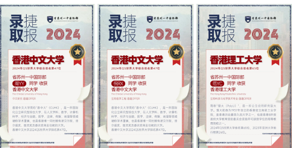 近年,卓越的学术水平,性价比超高的求学成本与便捷的往返,让香港成了家长和学生们的首选。香港大学、香港中文大学、香港理工大学等大学在最新发布的2023年QS世界大学排名中,均位居世界前100。一中国际部也延续往届香港方向offer成绩,收到了十数份百强名校的offer!