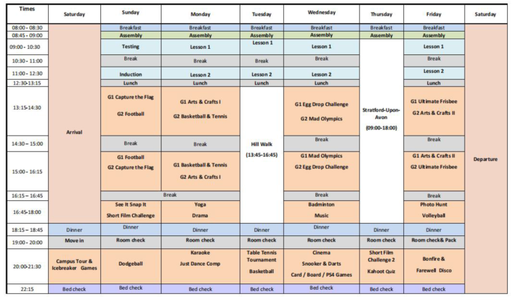 我们的行程:(本行程为参考行程,具体以当地学校实际安排为准)