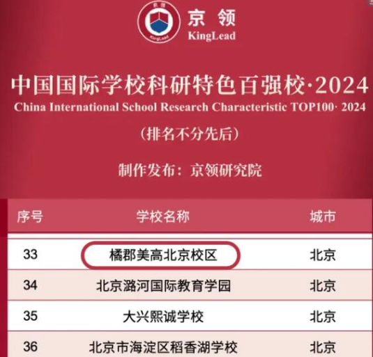 橘郡国际北京校区荣登2024中国国际学校创新竞争力百强榜,民办国际化学校50强No.17,北京地区No.1。