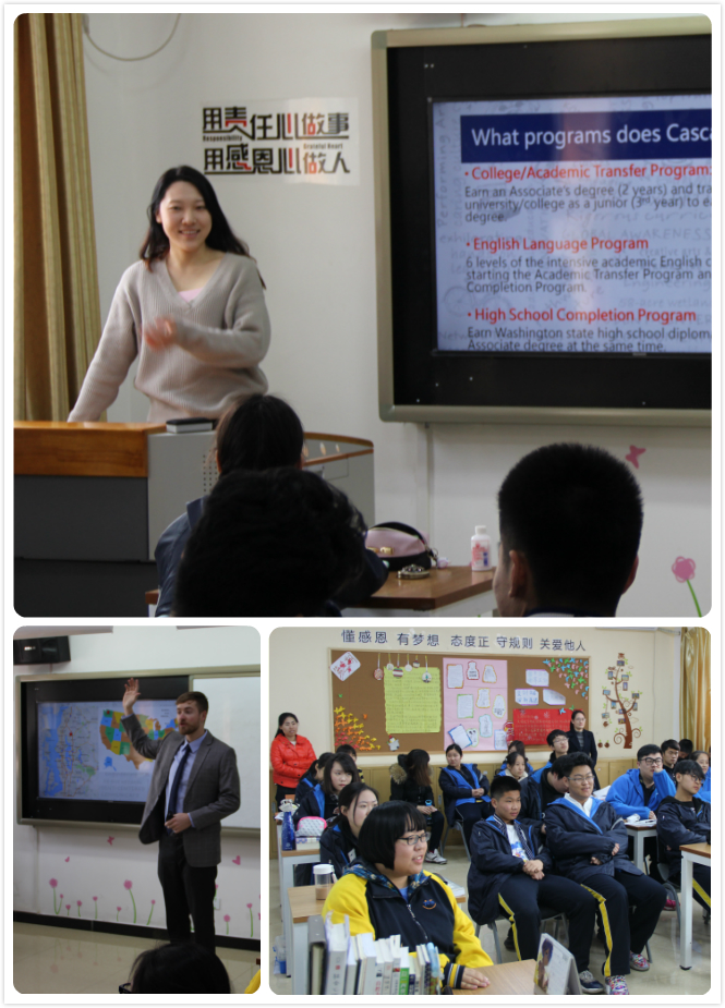 在本次交流活动中,美方老师向同学们介绍了西雅图的风土人情、美国的教育制度以及美国学校的情况。