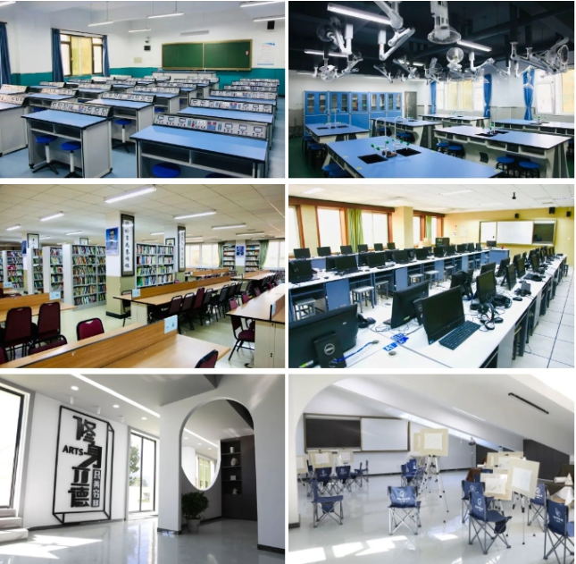 校园布局合理,半环形主教学楼与教师公寓楼、学生公寓楼、学校食堂相呼应,气势宏伟;图书馆、阅览室、实验室、计算机教室为教师、学生发展和学校教育教学工作提供了优秀的硬件条件。