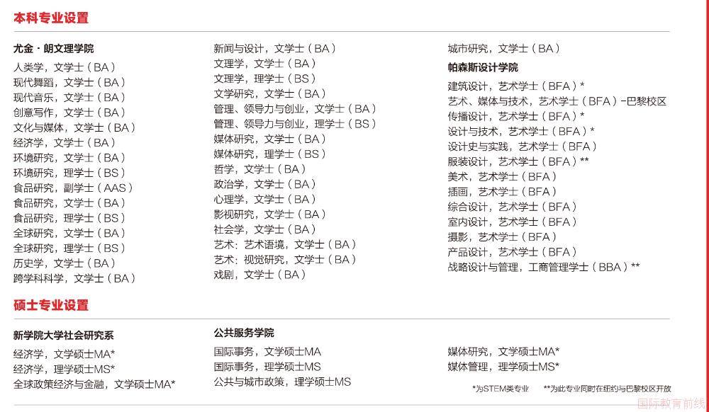 帕森斯设计学院(纽约市):有“时尚设计的殿堂”之称。服装设计全美第一,平面设计、插画、室内设计、整合设计同样出色。位于纽约,资源丰富。请参考专业列表